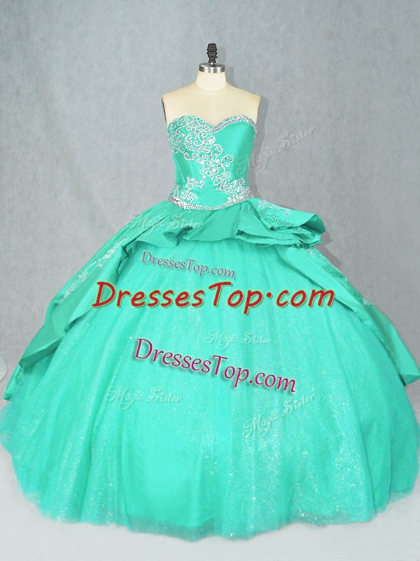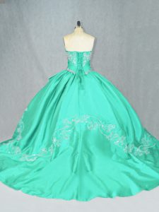 Dynamic Turquoise Ball Gowns Sweetheart Sleeveless Satin Court Train Lace Up Embroidery Sweet 16 Dresses