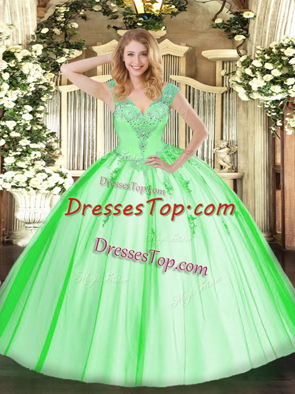 Dynamic V-neck Sleeveless Lace Up Sweet 16 Dresses Tulle