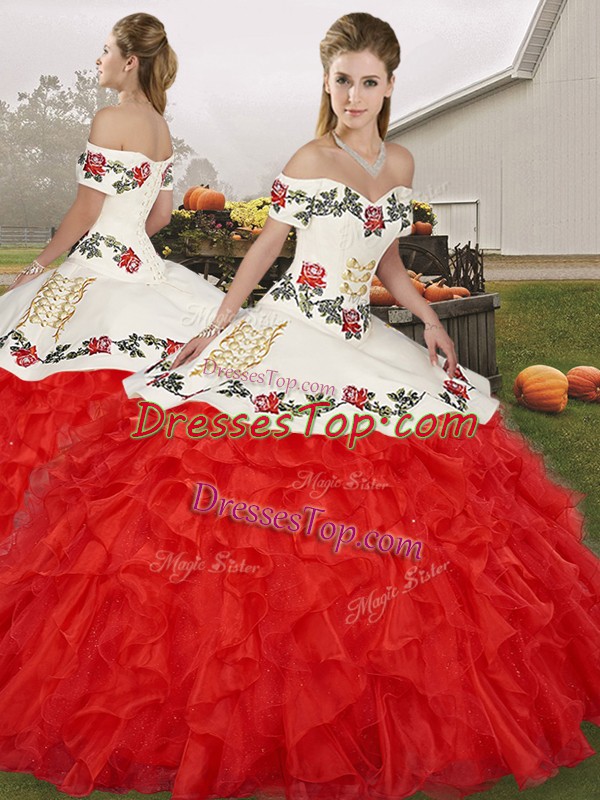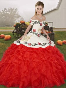 Dynamic White And Red Sleeveless Organza Lace Up Vestidos de Quinceanera for Military Ball and Sweet 16 and Quinceanera