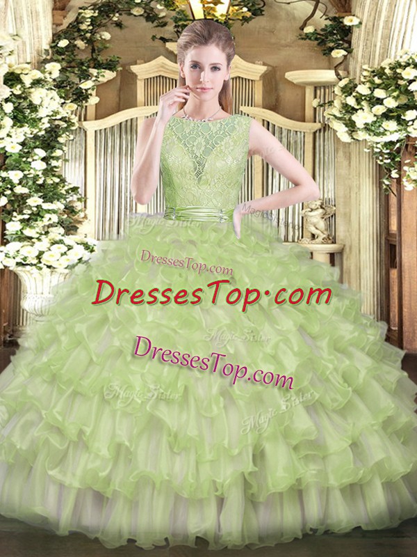 Dynamic Yellow Green Sleeveless Beading and Ruffled Layers Floor Length Quinceanera Gowns