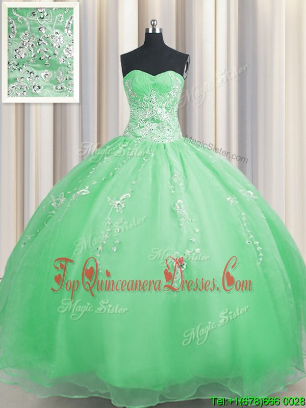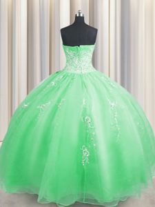 Dynamic Zipper Up Organza Sleeveless Floor Length Sweet 16 Dress and Beading and Appliques