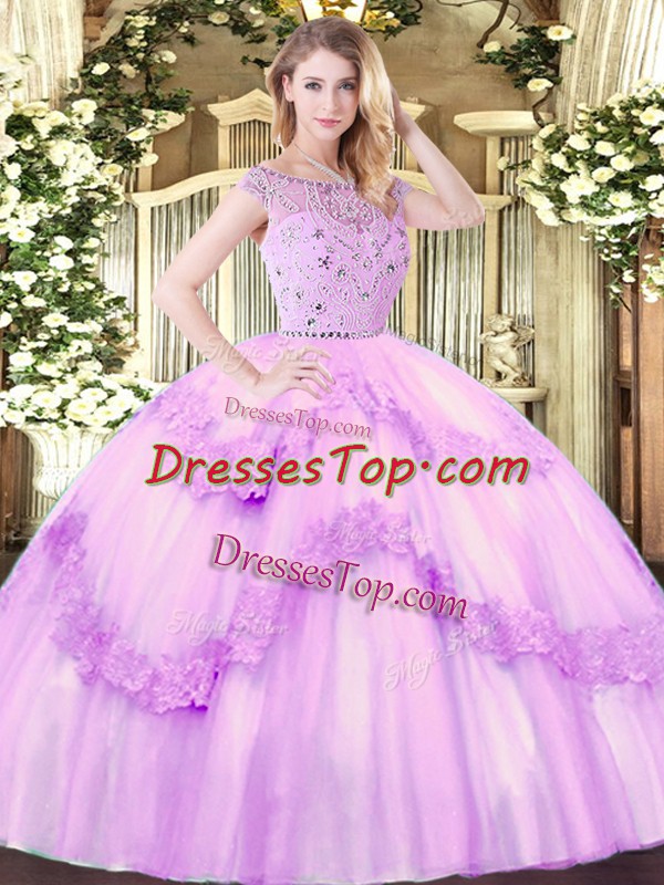 Edgy Bateau Sleeveless Zipper Quinceanera Gown Lilac Tulle