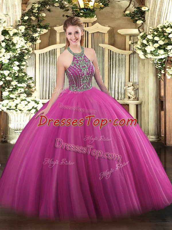 Edgy Floor Length Ball Gowns Sleeveless Hot Pink Sweet 16 Dresses Lace Up