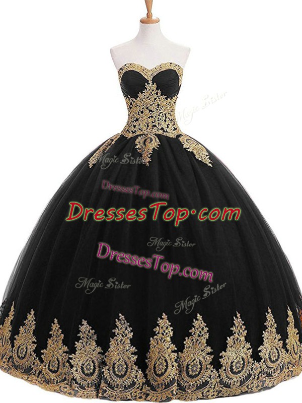Edgy Floor Length Lace Up Ball Gown Prom Dress Black for Sweet 16 and Quinceanera with Appliques