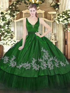 Edgy Floor Length Zipper Quinceanera Gown Dark Green for Military Ball and Sweet 16 and Quinceanera with Beading and Embroidery
