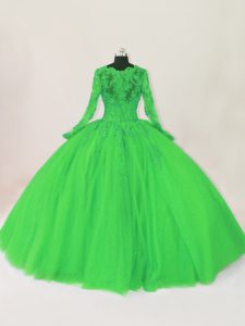 Edgy Green Tulle Zipper Ball Gown Prom Dress Long Sleeves Floor Length Lace