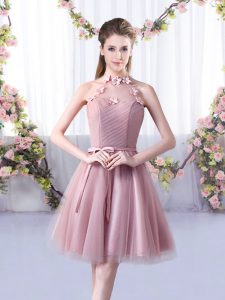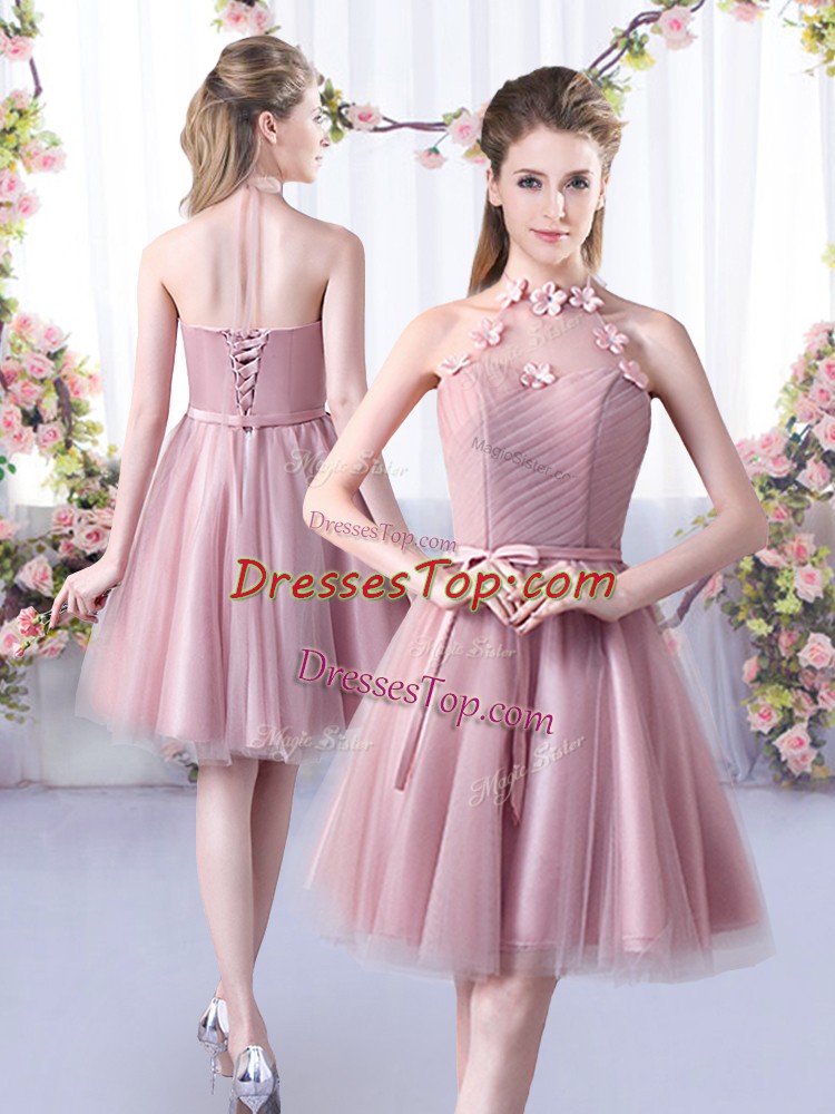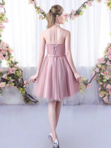 Edgy Knee Length A-line Sleeveless Pink Quinceanera Court of Honor Dress Lace Up