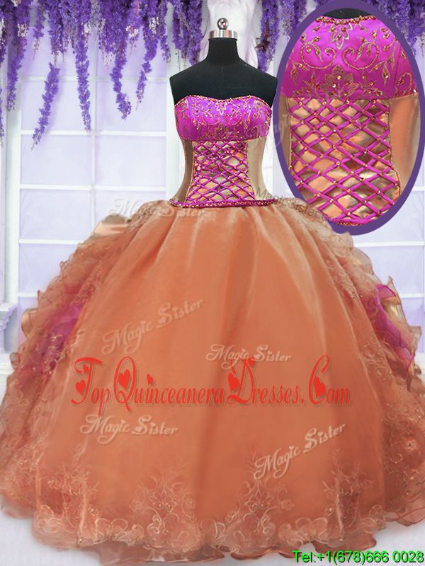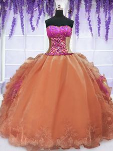 Edgy Orange Sleeveless Organza Lace Up Quinceanera Dresses for Military Ball and Sweet 16 and Quinceanera