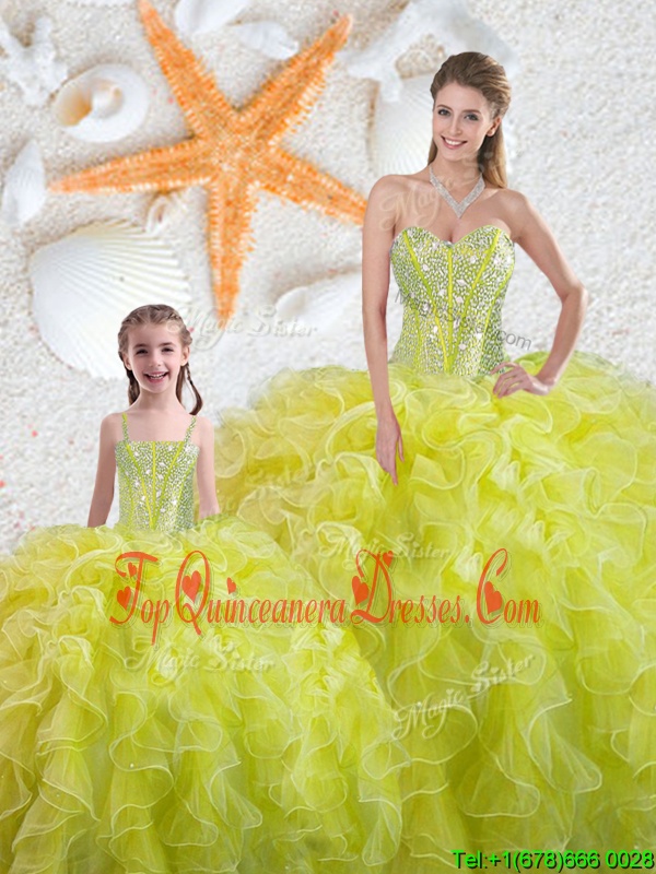 Edgy Sleeveless Organza Floor Length Lace Up 15th Birthday Dress in Yellow Green for with Beading and Ruffles