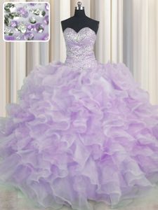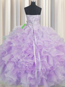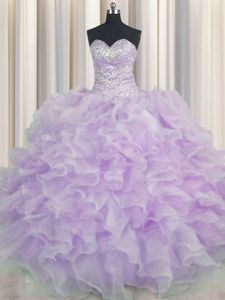Edgy Sweetheart Sleeveless Lace Up Sweet 16 Dress Lavender Organza