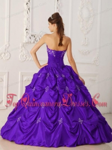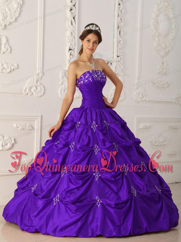Eggplant Purple Ball Gown Strapless Floor-length Taffeta Appliques and Beading Vestidos de Quinceanera