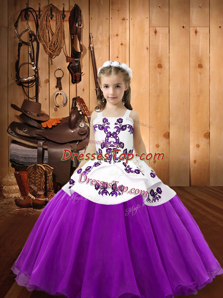 Eggplant Purple Ball Gowns Straps Sleeveless Organza Floor Length Lace Up Embroidery Pageant Dress for Teens