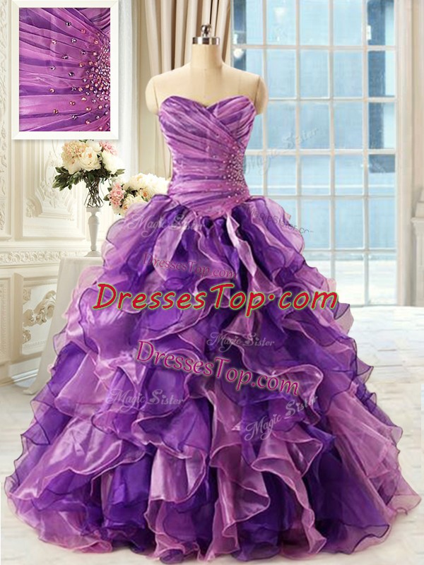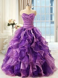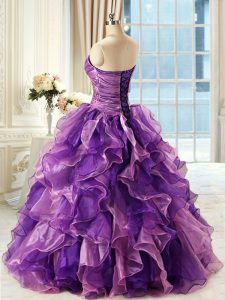 Eggplant Purple Lace Up Quince Ball Gowns Beading and Ruffles Sleeveless Floor Length