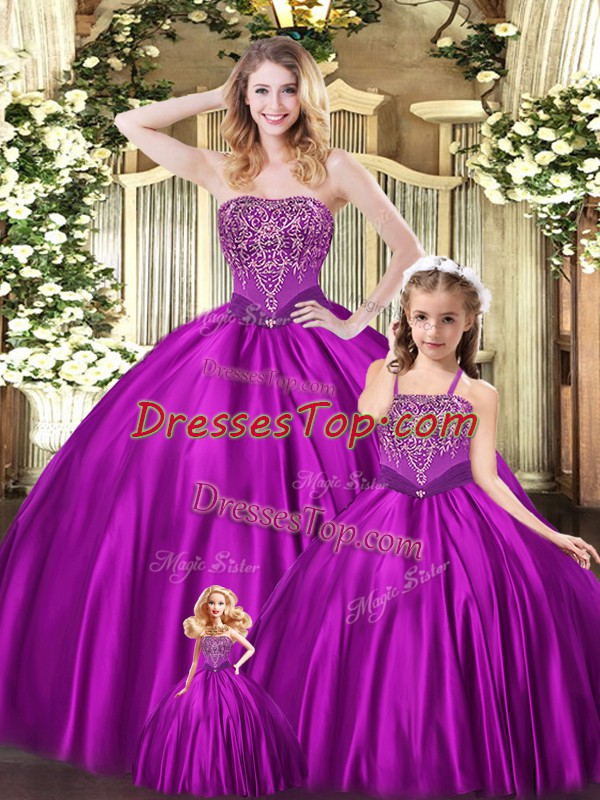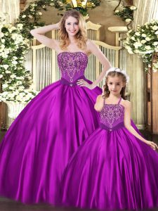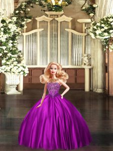 Eggplant Purple Organza Lace Up Quinceanera Dresses Sleeveless Floor Length Beading