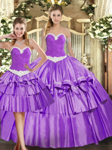 Eggplant Purple Sleeveless Organza Lace Up Quinceanera Dress for Military Ball and Sweet 16 and Quinceanera