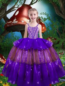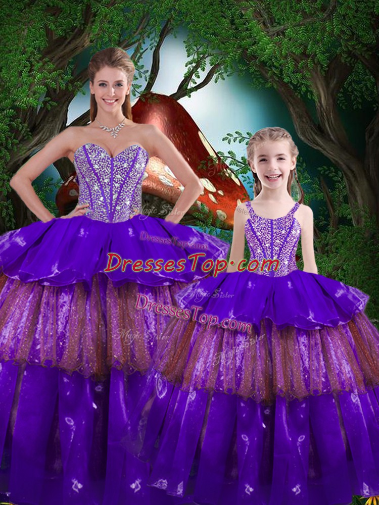 Eggplant Purple Sleeveless Organza Lace Up Quinceanera Gown for Military Ball and Sweet 16 and Quinceanera