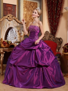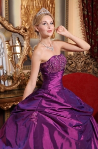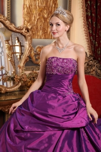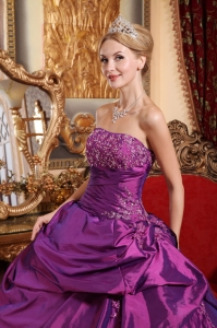 Eggplant Purple Sweet 16 Dress Strapless Taffeta Quinceaenera Dress