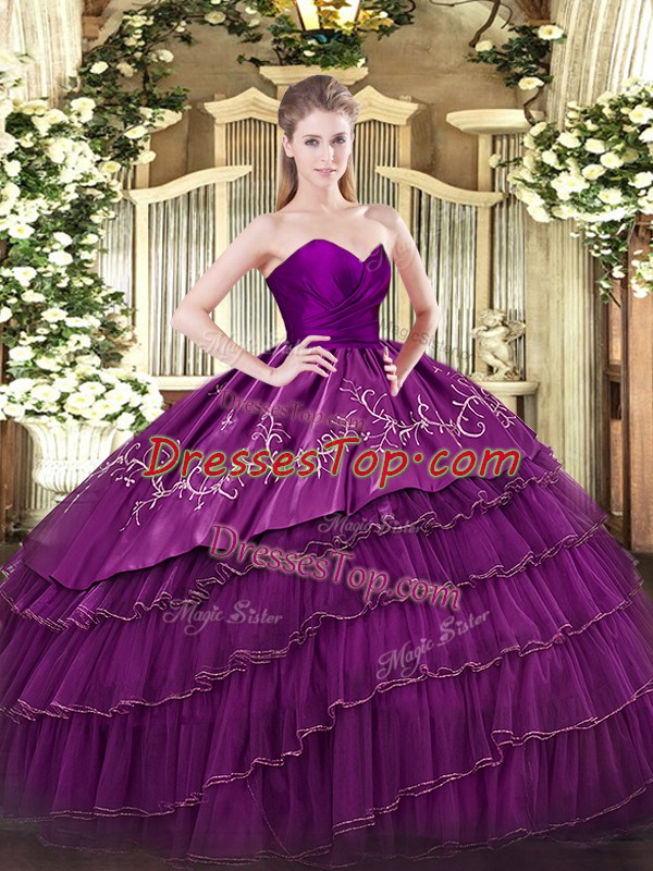Eggplant Purple Sweetheart Zipper Embroidery and Ruffled Layers Quinceanera Dresses Sleeveless