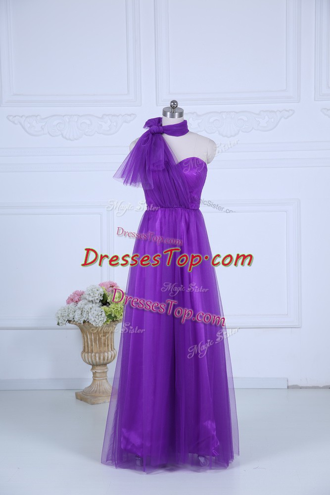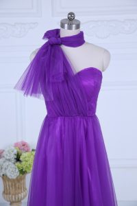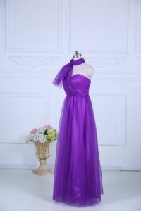 Eggplant Purple Zipper Halter Top Ruching Dama Dress Tulle Sleeveless