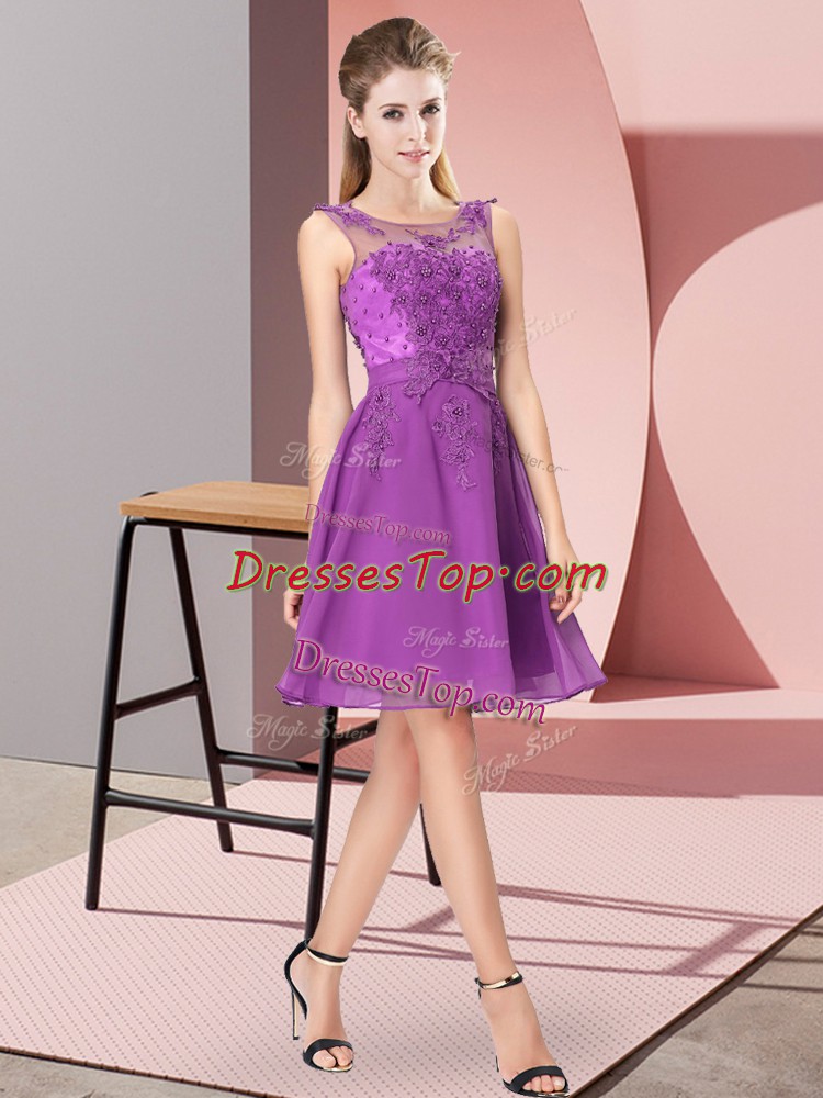 Eggplant Purple Zipper Scoop Appliques Vestidos de Damas Chiffon Sleeveless
