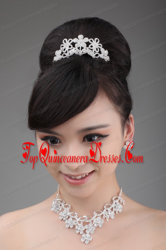 Elegant Alloy and Rhinestone Tiara and Necklace