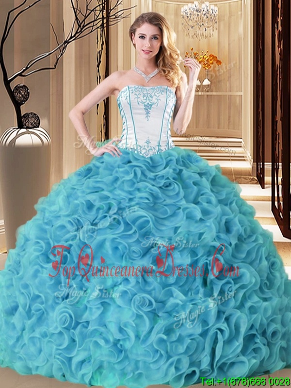 Elegant Aqua Blue Lace Up 15 Quinceanera Dress Embroidery and Ruffles Sleeveless Floor Length