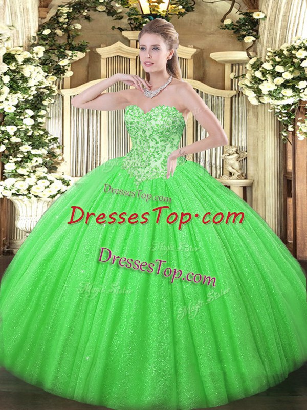 Elegant Ball Gowns Appliques 15th Birthday Dress Lace Up Tulle Sleeveless Floor Length