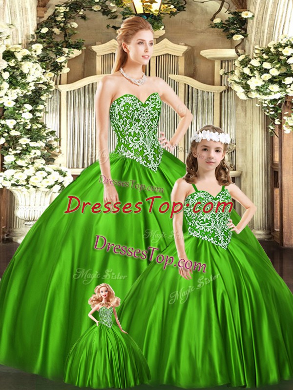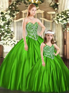 Elegant Ball Gowns Sweet 16 Dress Green Sweetheart Organza Sleeveless Floor Length Lace Up