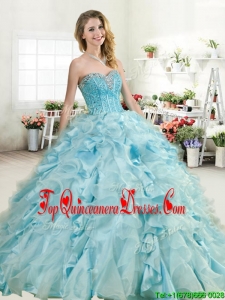 Elegant Beaded and Ruffled Quinceanera Dress in Baby Blue
