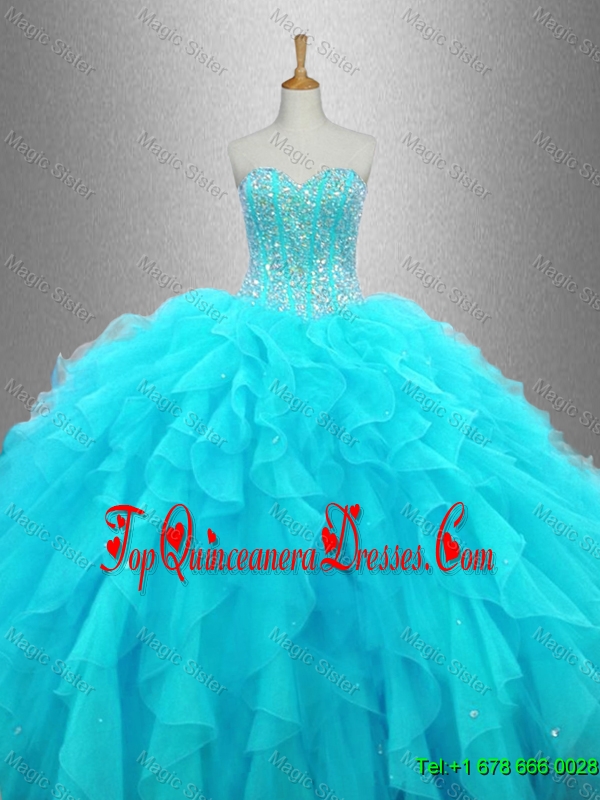 Elegant Beaded Sweetheart Quinceanera Gowns in Aqua Blue for Summer