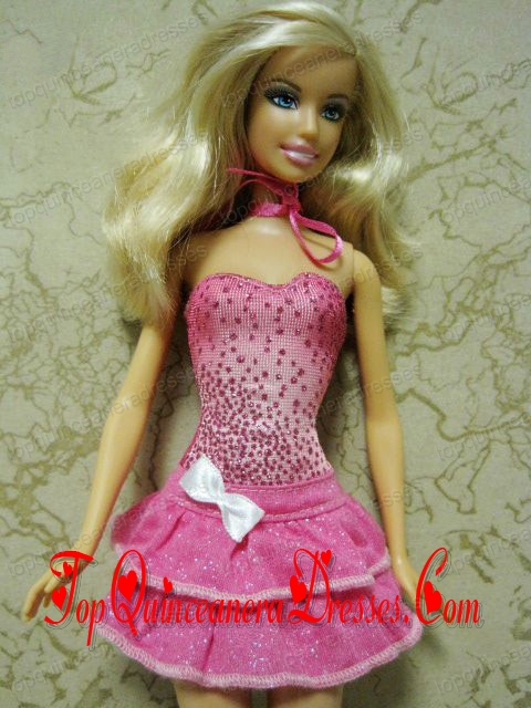 Elegant Beading Short Hot Pink Barbie Doll Dress