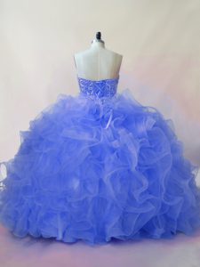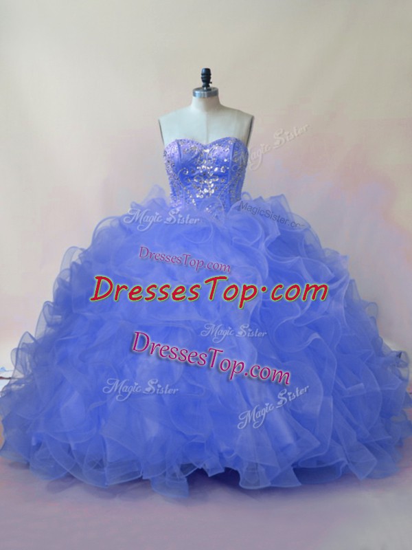 Elegant Blue Sweetheart Lace Up Beading and Ruffles 15 Quinceanera Dress Sleeveless