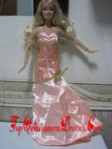 Elegant Champagne Beading Decorate Mermaid Wedding Clothes Barbie Doll Dress