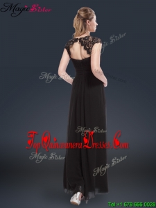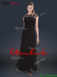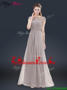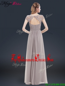 Elegant Empire Cap Sleeves Beading and Ruching Dama Dresses