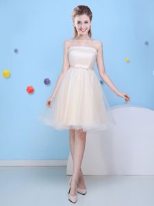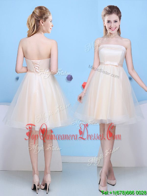 Elegant Empire Vestidos de Damas Aqua Blue Off The Shoulder Tulle Short Sleeves Knee Length Lace Up