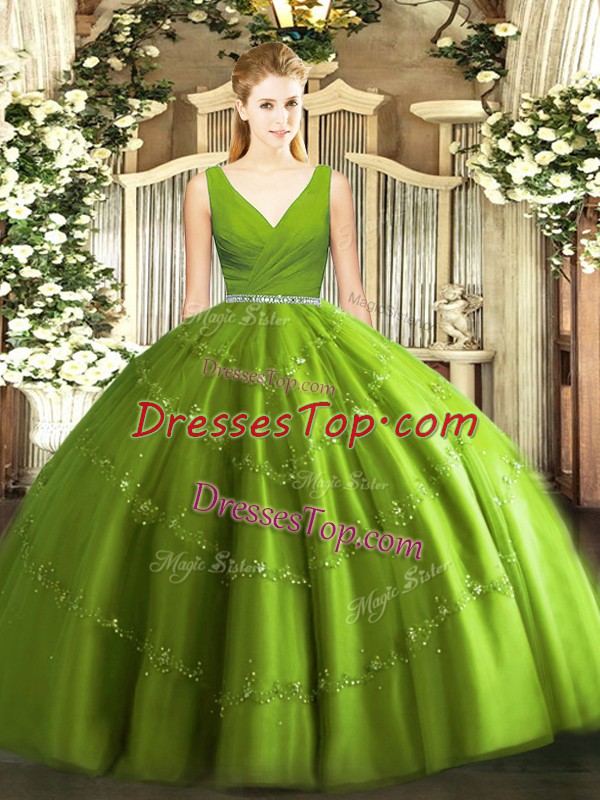 Elegant Floor Length Ball Gowns Sleeveless Olive Green Ball Gown Prom Dress Zipper