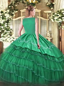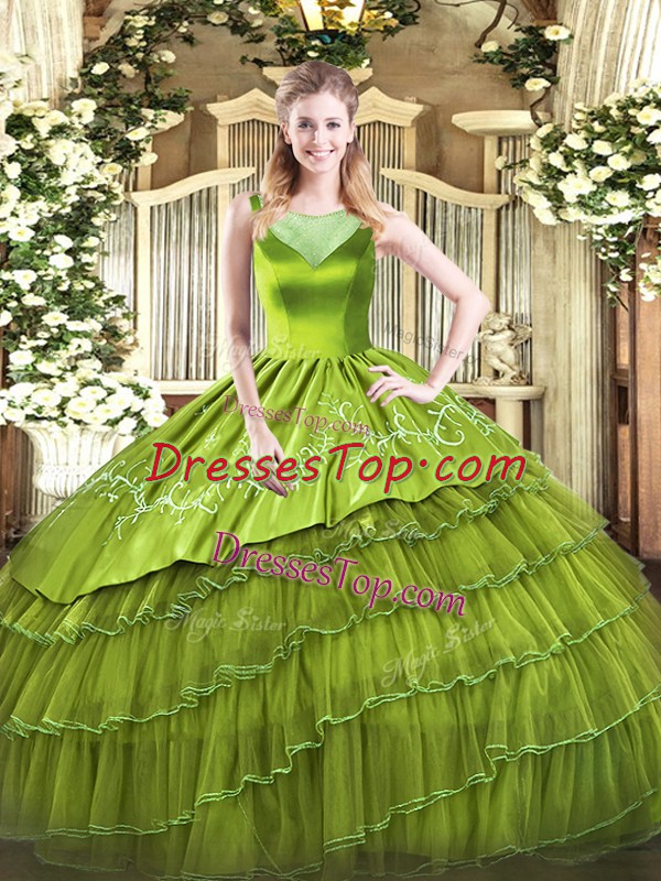 Elegant Floor Length Side Zipper Quinceanera Dresses Olive Green for Sweet 16 and Quinceanera with Beading and Embroidery