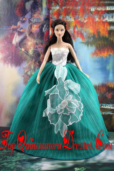 Elegant Green Gown With Appliques Dress For Barbie Doll
