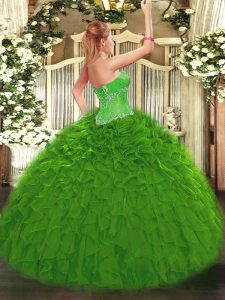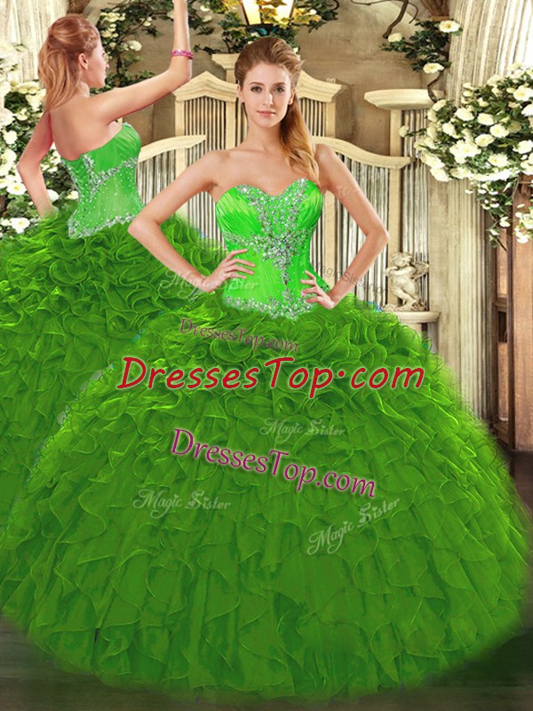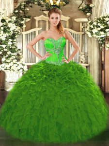 Elegant Green Quince Ball Gowns Sweet 16 and Quinceanera with Beading and Ruffles Sweetheart Sleeveless Lace Up