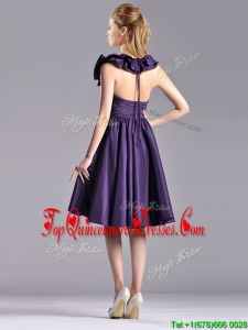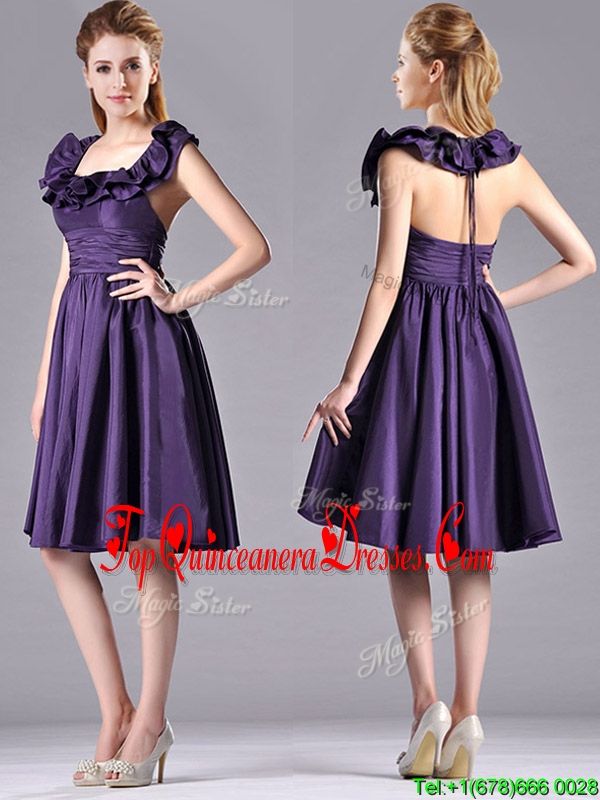 Elegant Halter Top Backless Short Dama Dress in Dark Purple