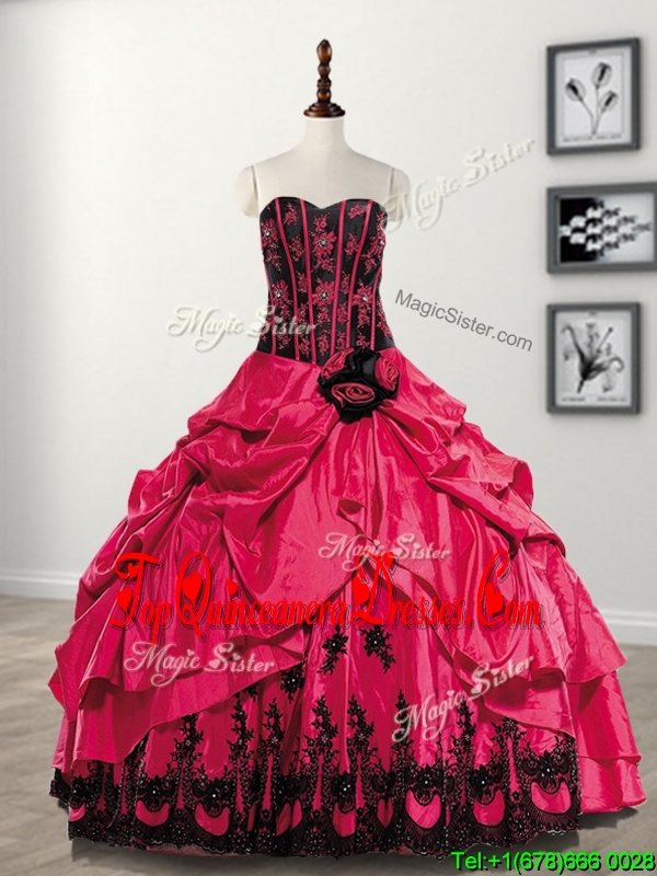 Elegant Hand Made Flowers and Pick Ups Taffeta Sweet 16 Dress in Coral Red