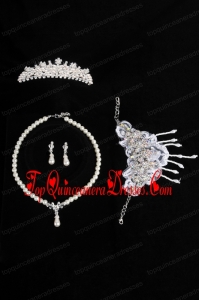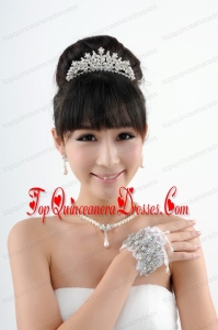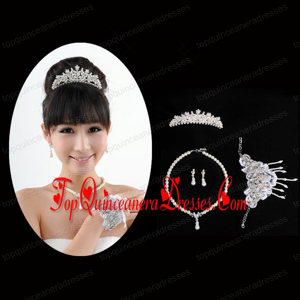 Elegant Ivory Pearl Artistic Necklace Bracele And Tiara