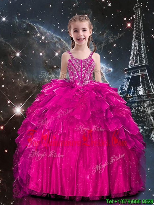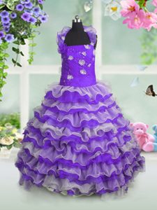 Elegant Lavender Ball Gowns Straps Sleeveless Organza Floor Length Lace Up Beading and Appliques and Ruffled Layers Evening Gowns