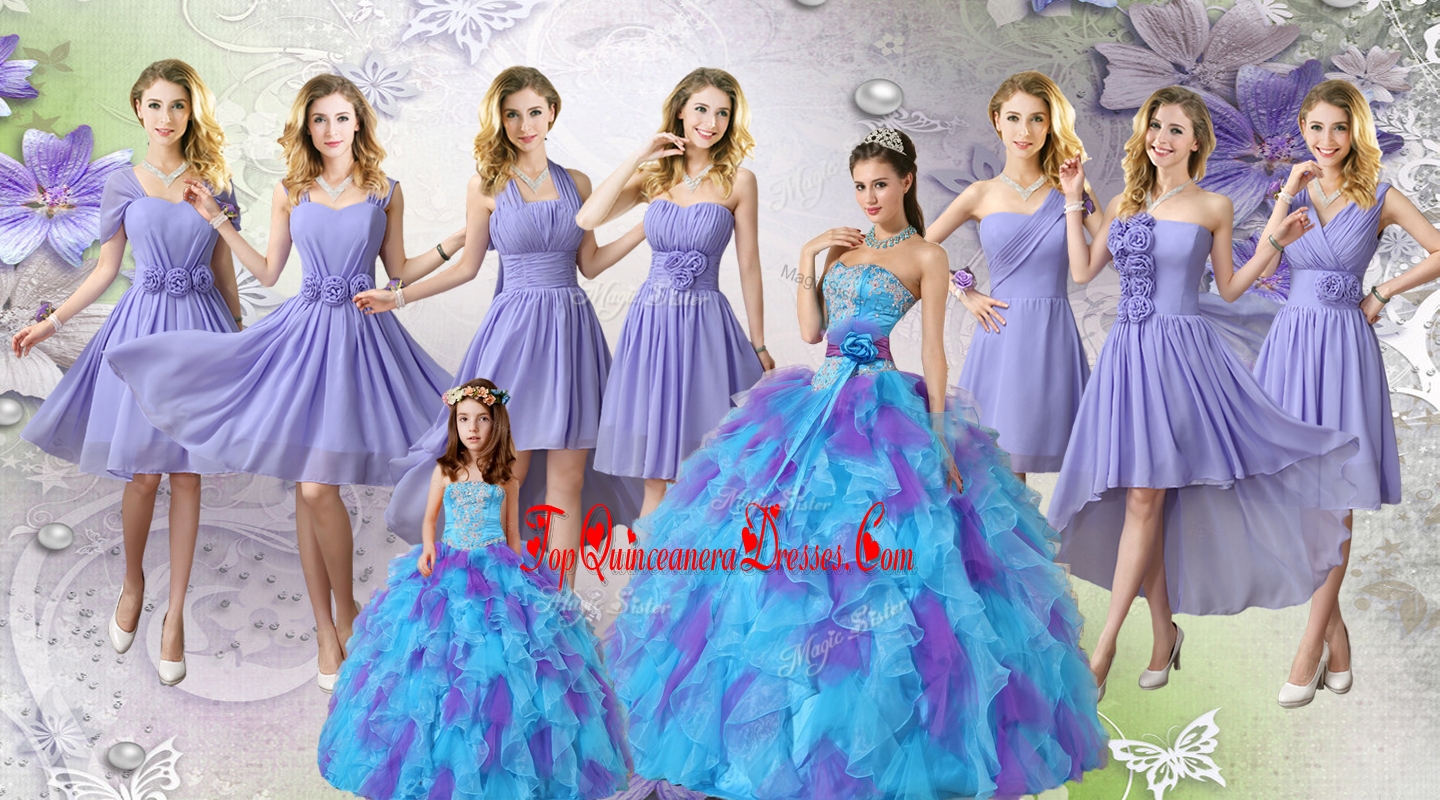 Elegant Multi Color Tulle Quinceanera Dresses and Lovely Ball Gown Mini Quinceanera Dresses and Fashionable Hand Made Flowers Dama Dresses