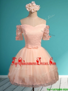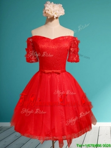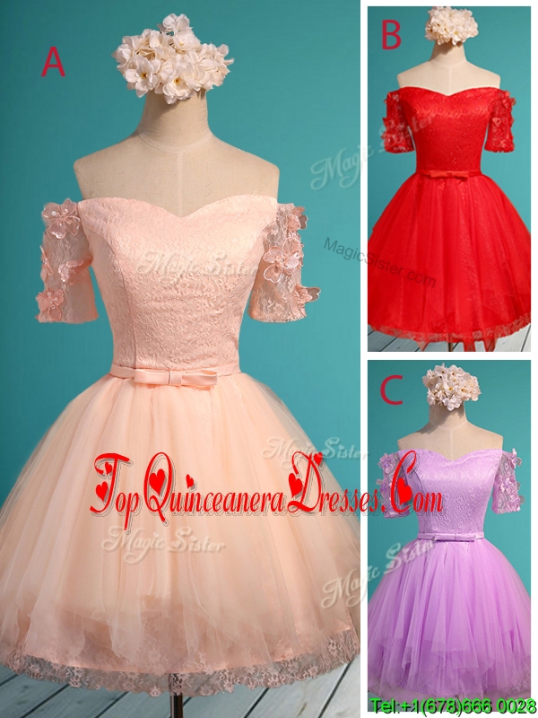 Elegant Off the Shoulder Short Sleeves Dama Dress with Appliques and Belt