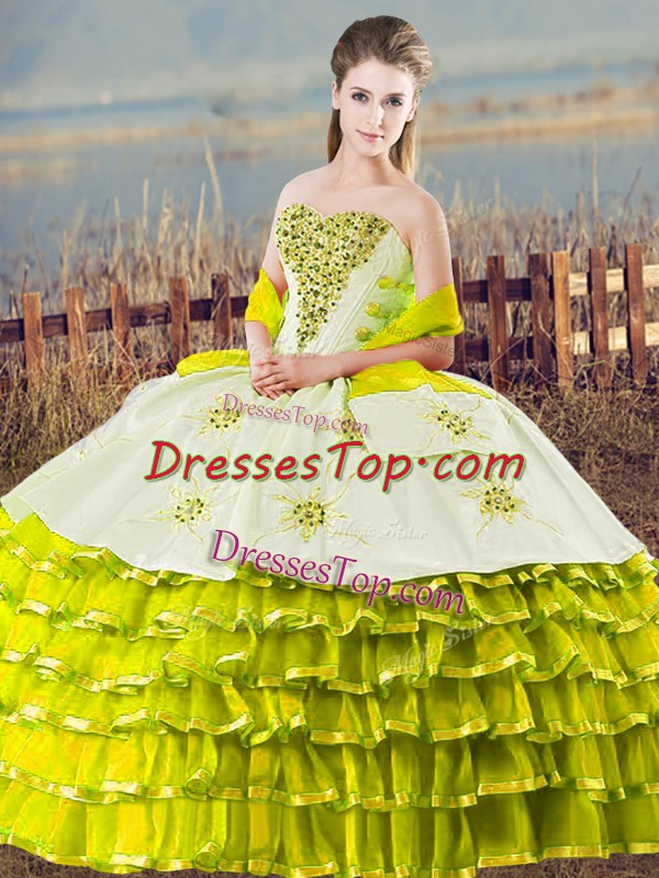 Elegant Olive Green Lace Up Quinceanera Dress Beading and Ruffled Layers Sleeveless Floor Length