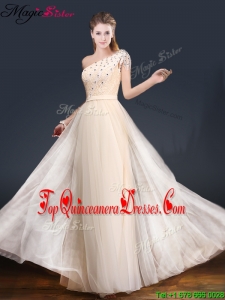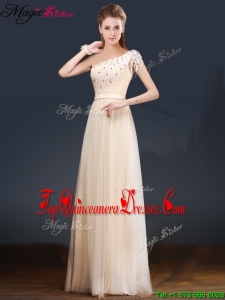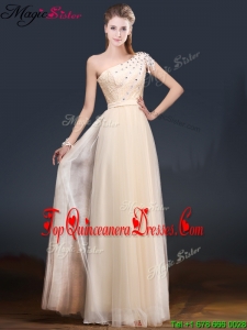 Elegant One Shoulder 2016 Dama Dresses with Appliques and Beading