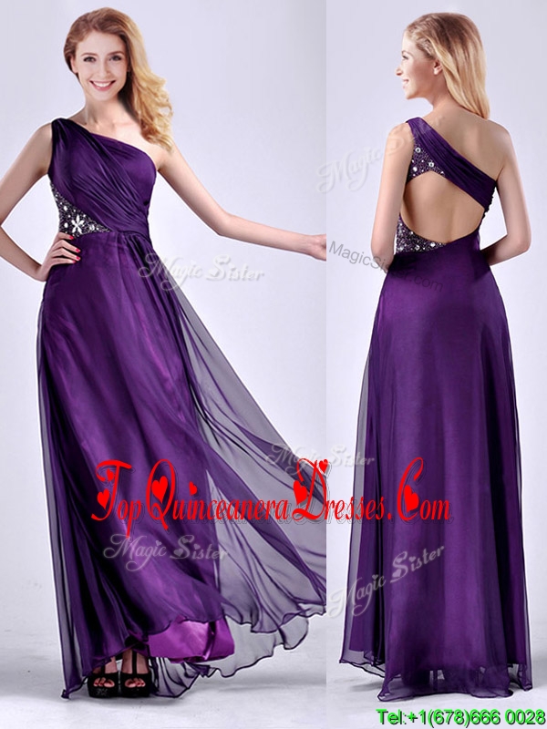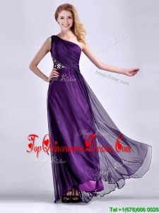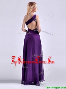 Elegant One Shoulder Criss Cross Purple Dama Dress with Beading