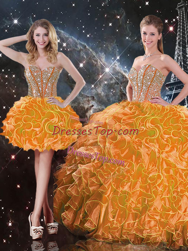Elegant Orange Lace Up Sweet 16 Dress Beading and Ruffles Sleeveless Floor Length