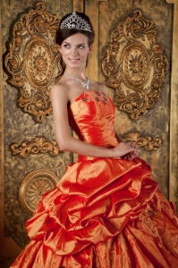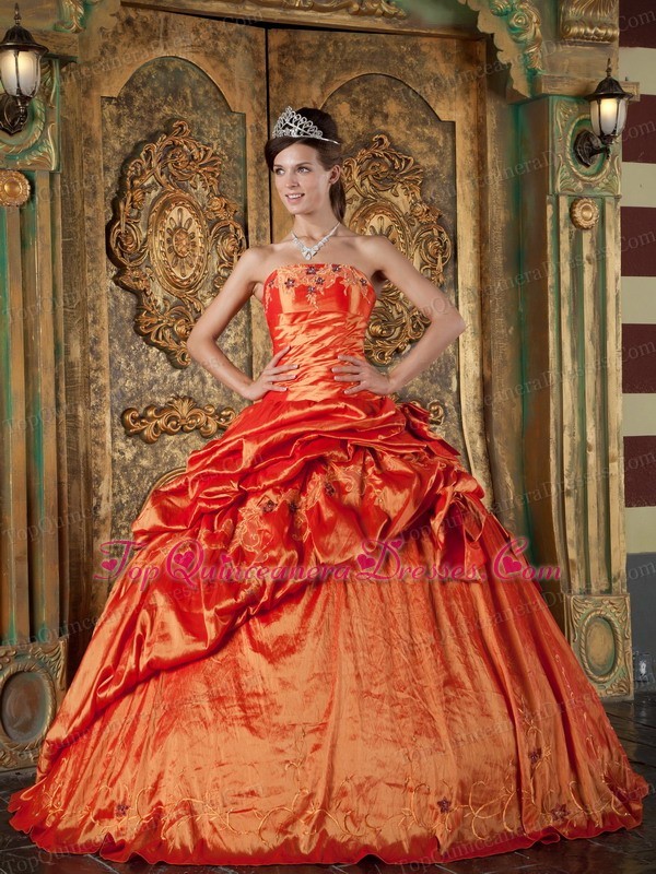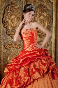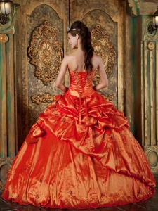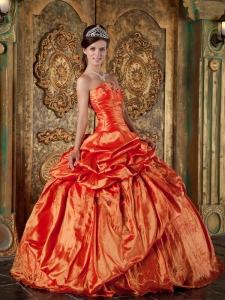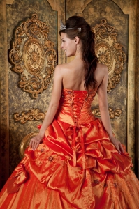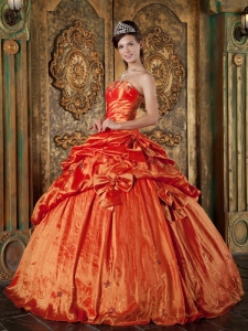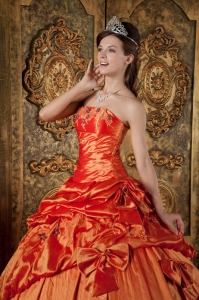 Elegant Orange Red Quinceanera Dress Strapless Pick-ups Taffeta